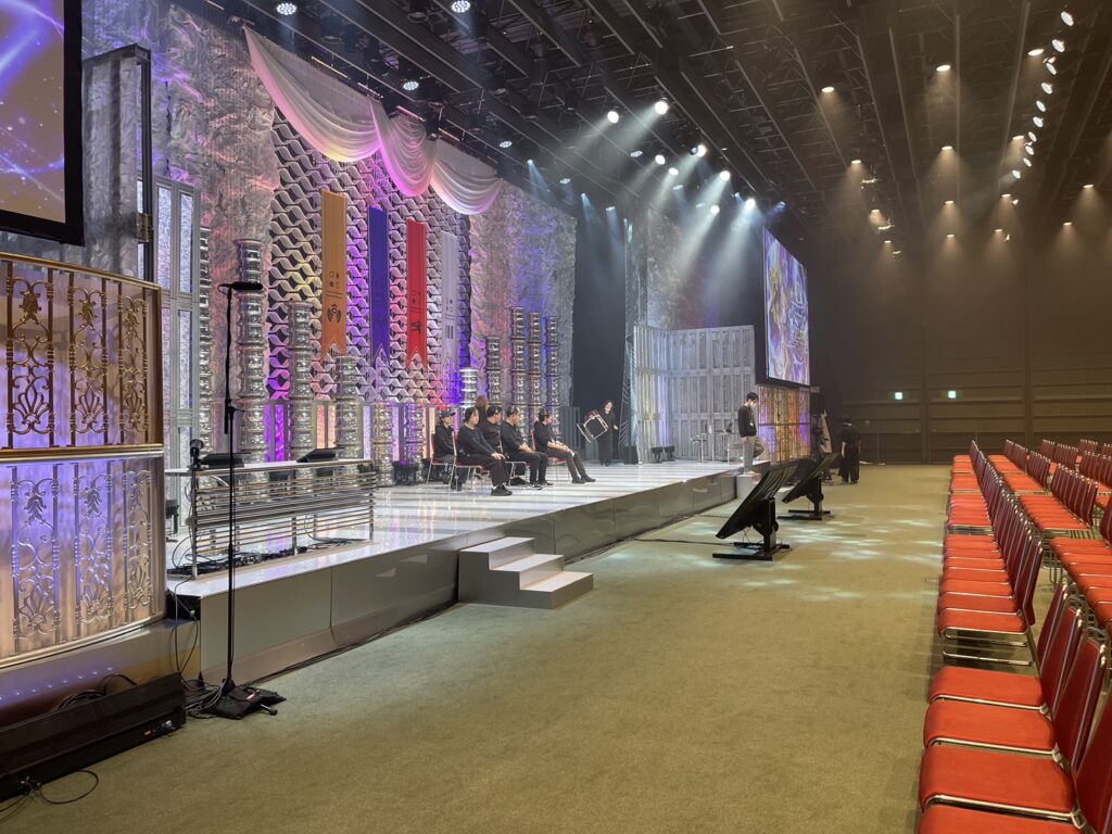 過去最大人数入るので本当はラインアレーを持ち込みたかったけど、スクリーンと装飾に阻まれてどんどん小さくなっていったメインスピーカー氏。